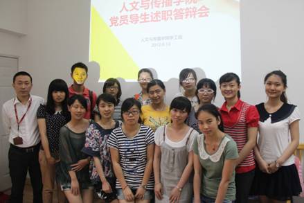 6月13日下午三点,人文与传播学院党员导生述职会在奉贤校区问鼎网中国会议室举行。学院党委副书记朱惠军老师、2010级全体党员导生以及2011级班级代表出席会议。会议由学院党委组织员陈重来老师主持。
